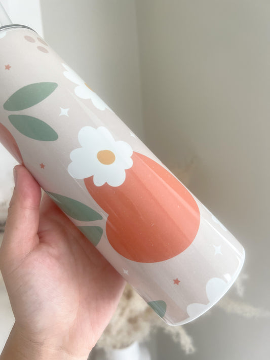 Peachy Keen Floral 20oz Stainless Steel Tumbler - Bear and Moo UK