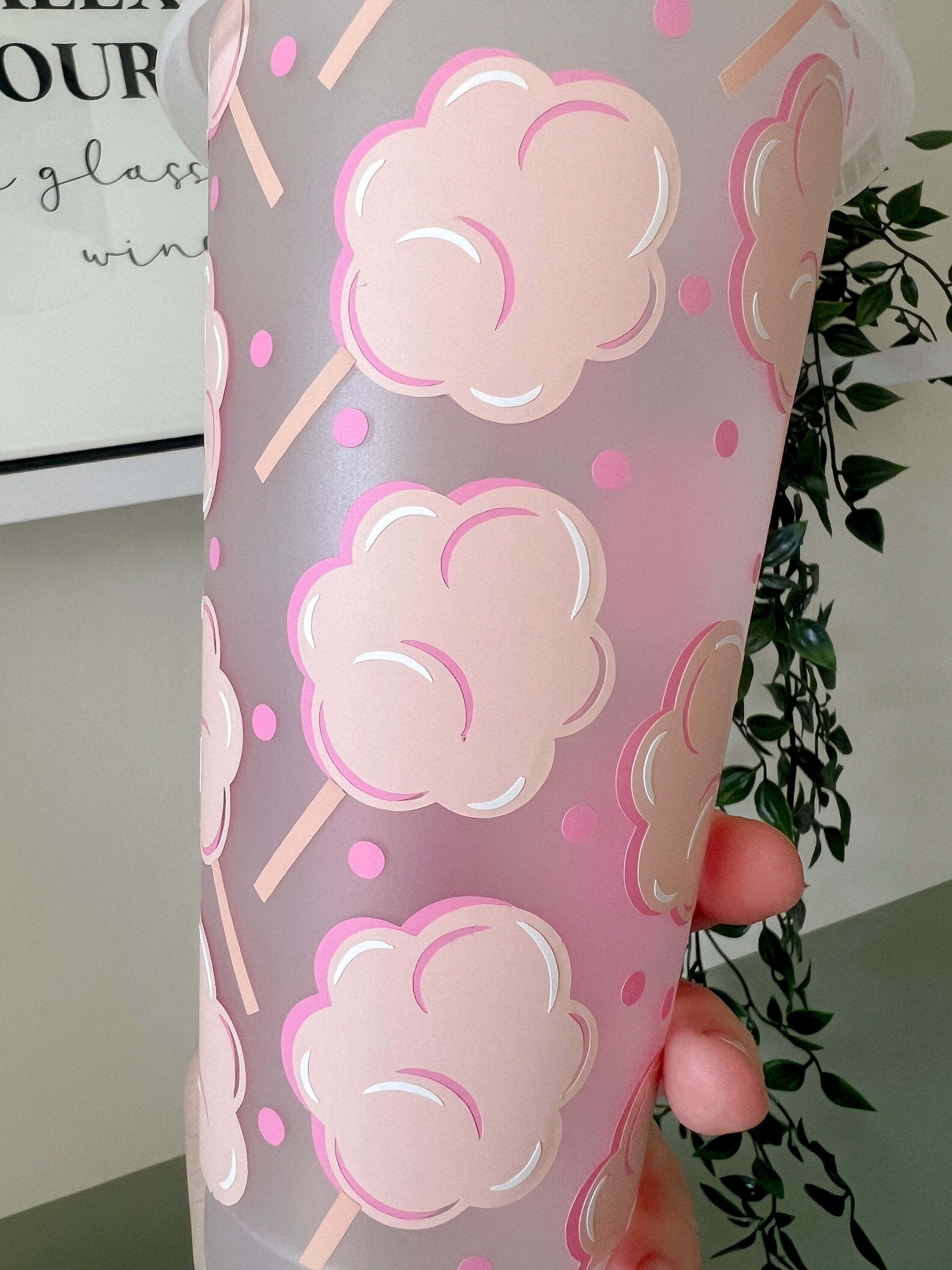 Enjoy your favourite cold drink or iced coffee in a super cute cotton candy cold cup! Ideal for adults and children. This listing is for a 24oz reusable cold cup which comes with a secure lid and straw. There is the option to upgrade straws if you wish at an extra charge. Please see listings for options. Made using premium vinyl and materials. If you would like the design on a different coloured cup, please do message prior to ordering to ensure we can do this for you!