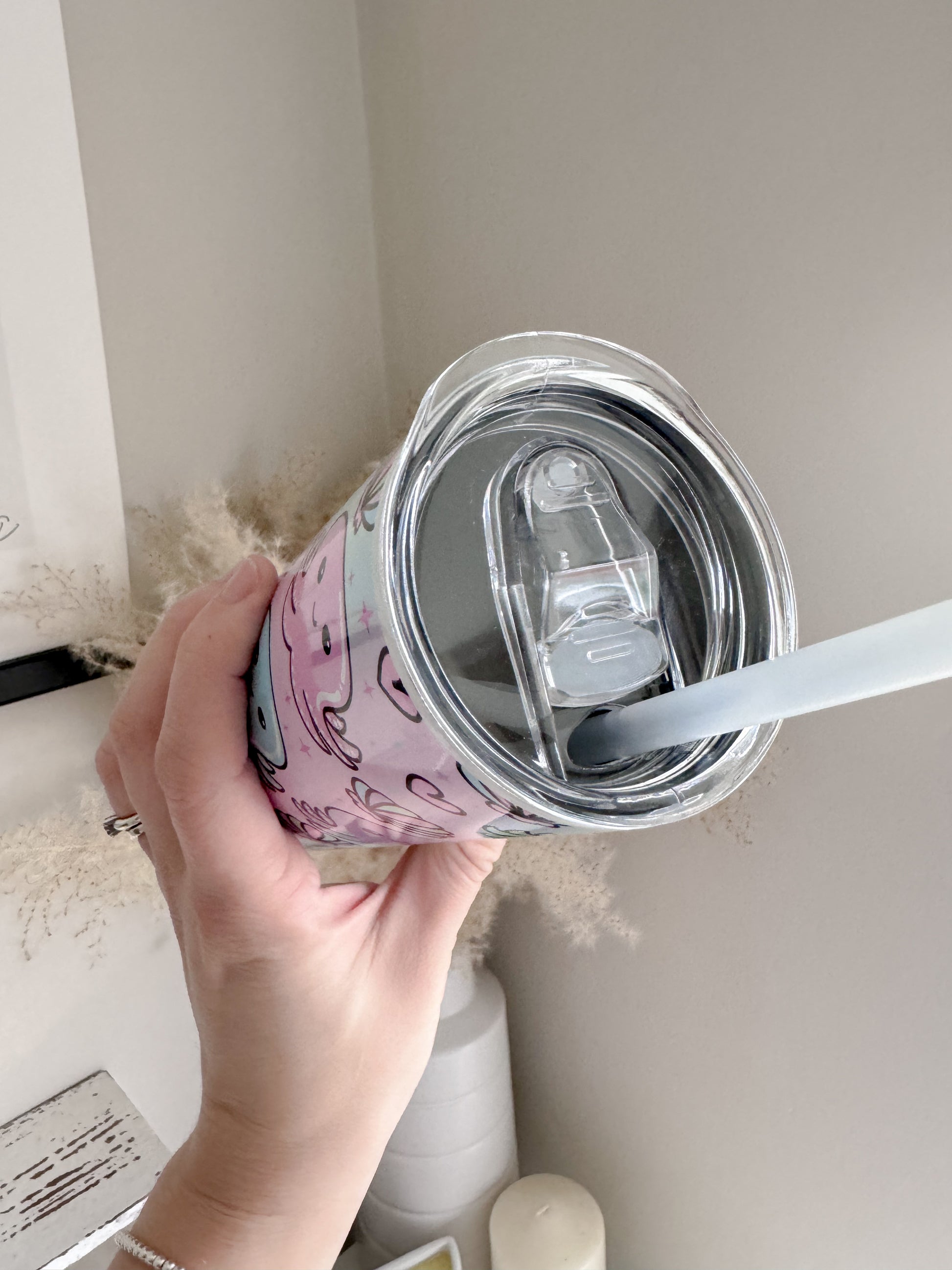 A 20oz stainless steel tumbler with a repeating pastel pattern of cute octopus, seashells and hearts. Ideal for anyone who is a fan of cute octopus and drinkware! The stainless steel tumbler is perfect for both hot and cold drinks. All tumblers come with a plastic straw and a BPA free lid that features a slide stopper where you can either drink straight from the tumbler or use a straw. Unlike our other products, this is printed with ink into the coating, meaning that the images cannot transfer or lift. The tumblers keep drinks warm/hot for approximately up to 6-8 hours and cold for up to 12.