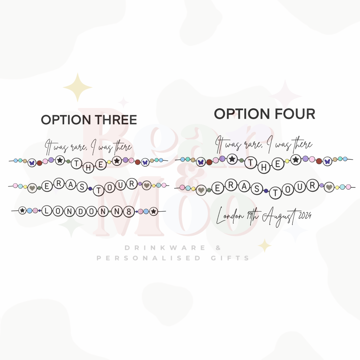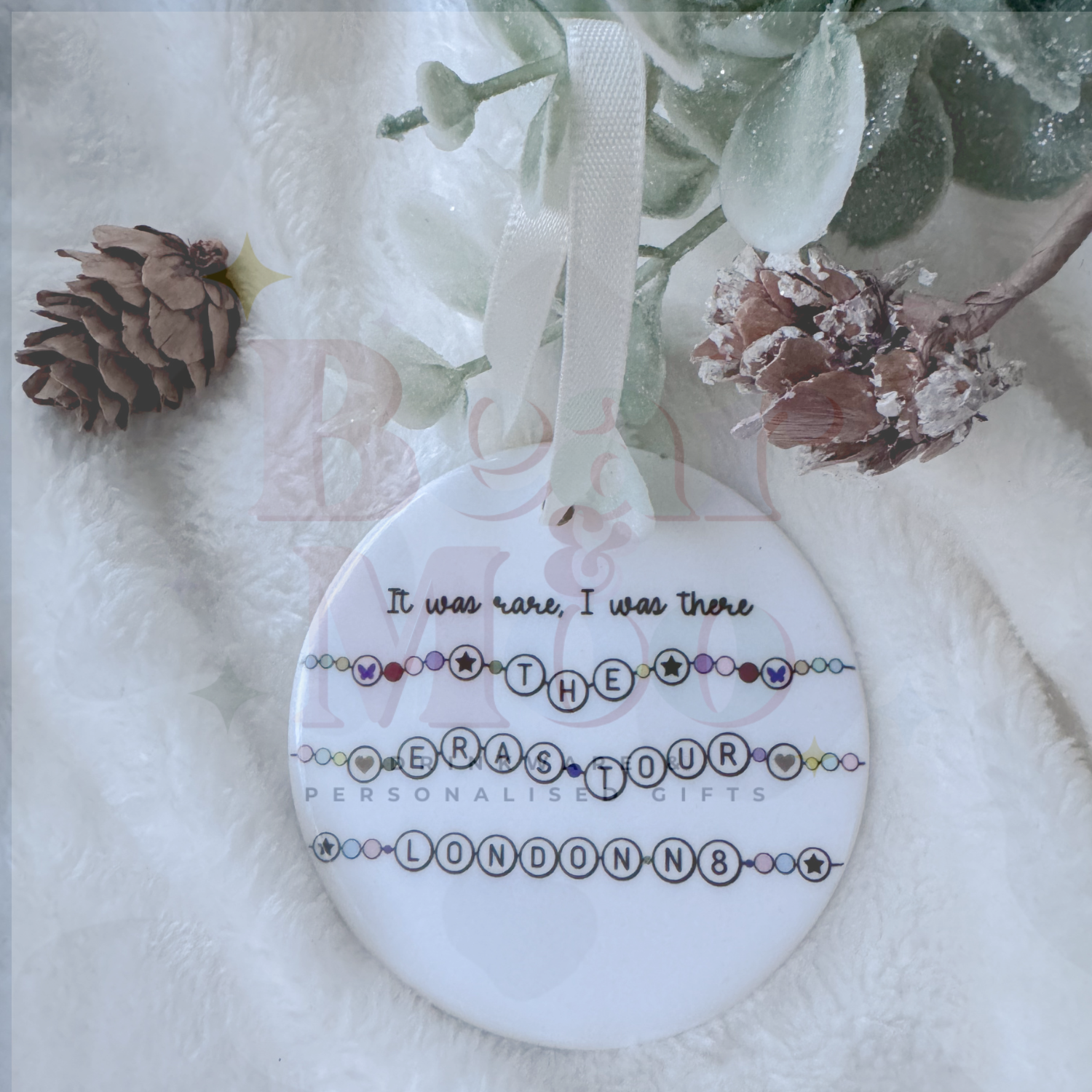 The ceramic baubles make for a lovely keepsake, ideal for any Swiftie wanting to commemorate their special night with a bauble. Each bauble is personalised to you. If you want a set colour scheme for the beads, we can do this - otherwise it will be a random assortment of colours and beads to match the Eras Tour vibes.