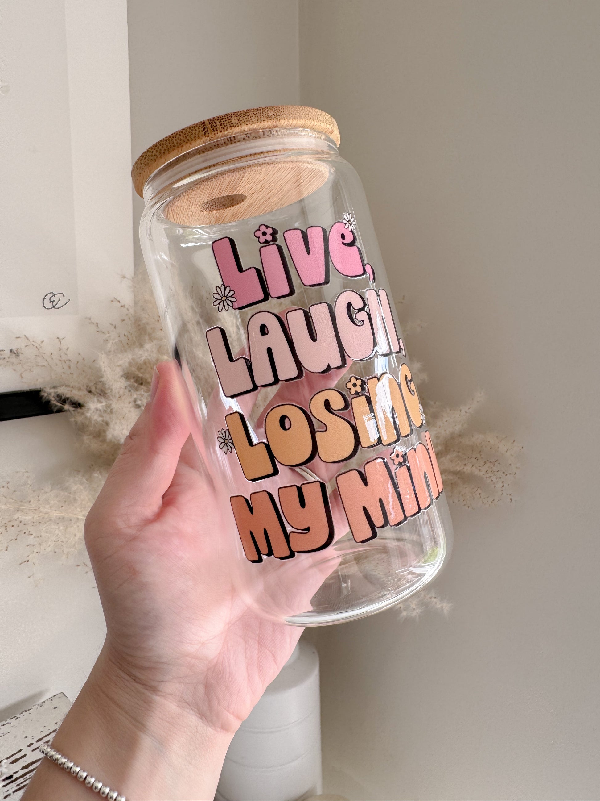 LIVE LAUGH LOSING MY MIND GLASS CAN