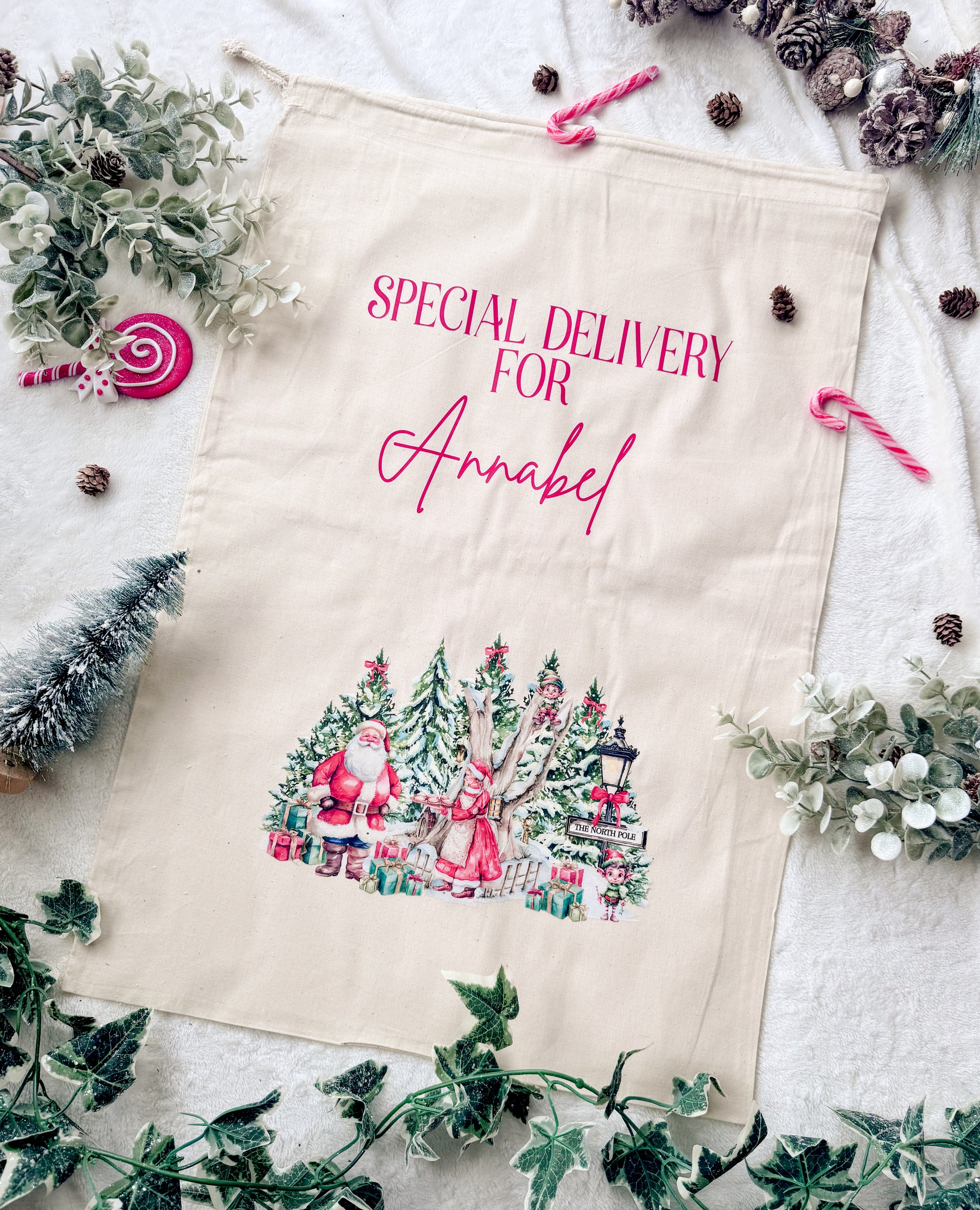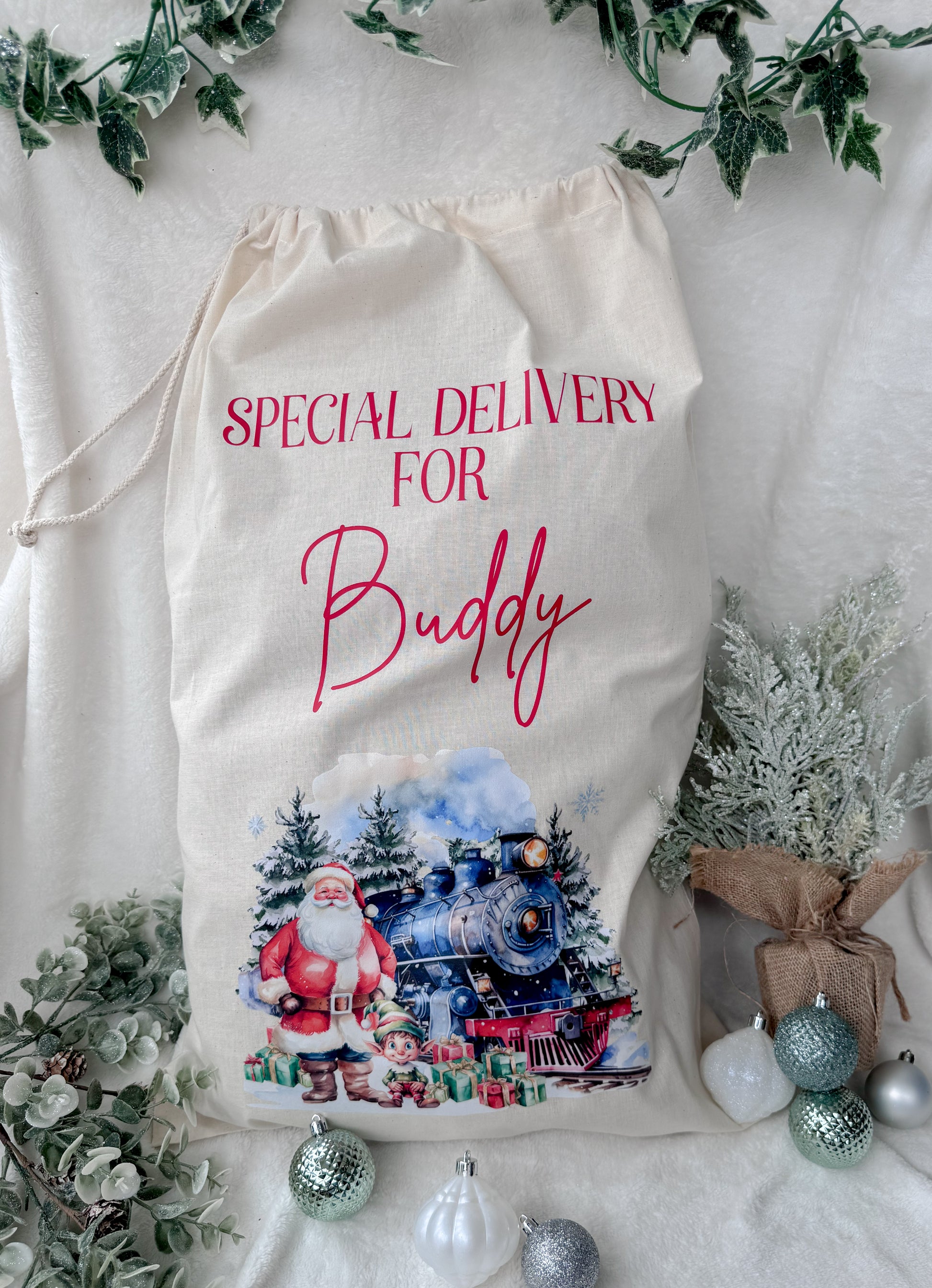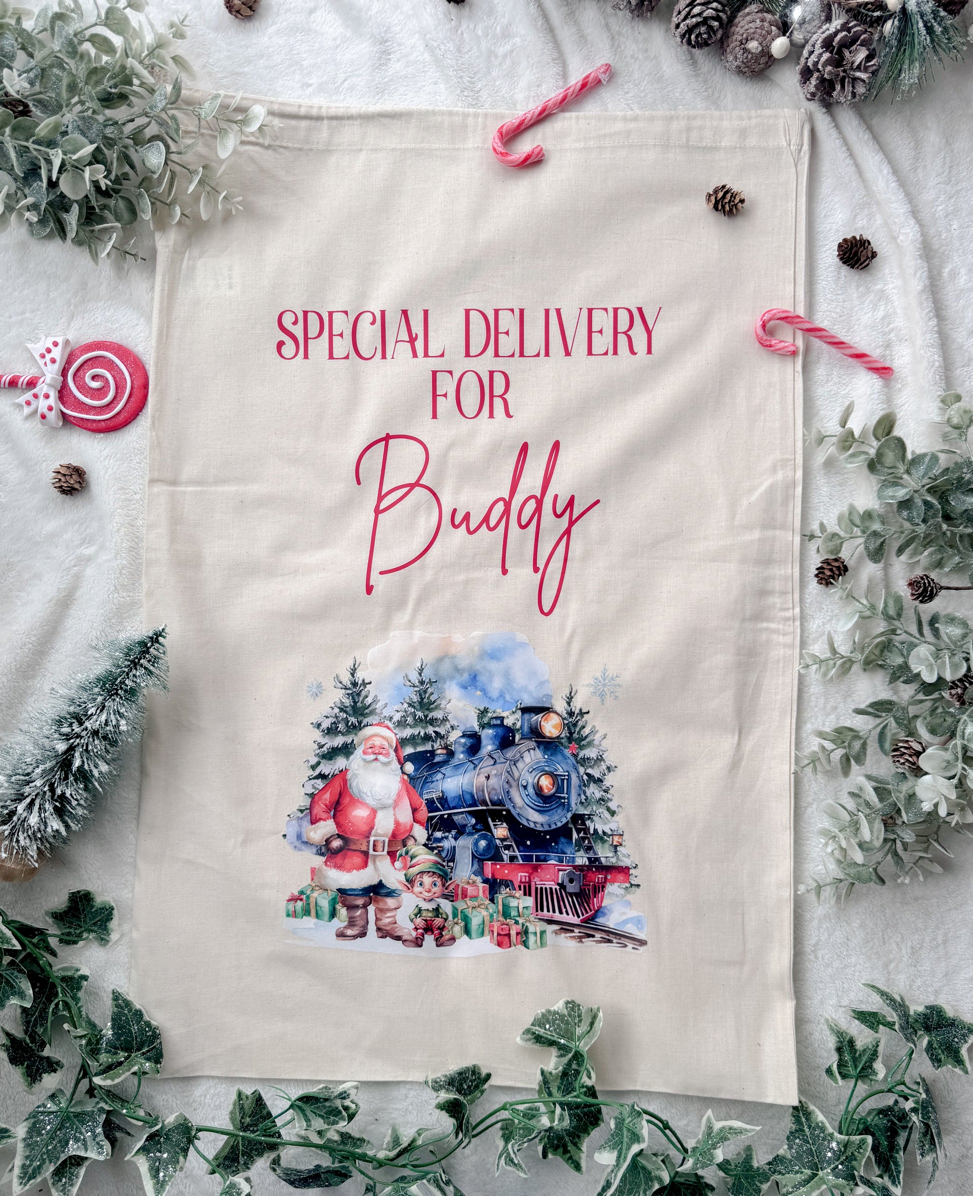 Step into Christmas and get ready for the most magical time of the year with these super cute personalised Santa sacks for Christmas for your little ones! Each sack is personalised with a name and a range of designs to choose from!