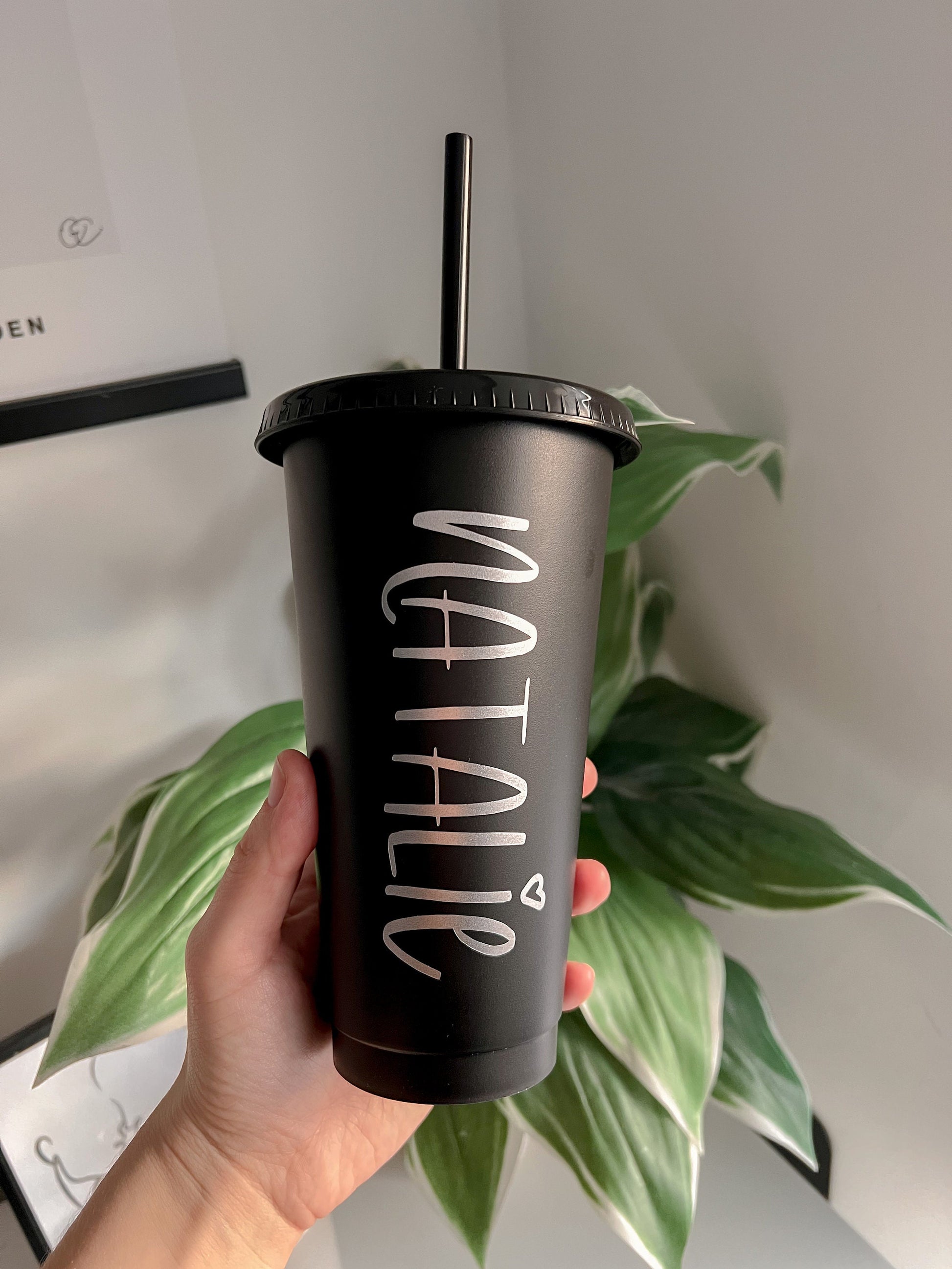 Beautiful matte black cold cups that come with a secure lid and straw. Ideal for a personalised gift for a friend or family. This listing is for names only, if you would like a custom order, please message directly before ordering to ensure we can do this for you. Please choose one of the eight font choices as shown otherwise I will assume you want font one. Additionally please select the name colour option or again, I will assume you want the first option.