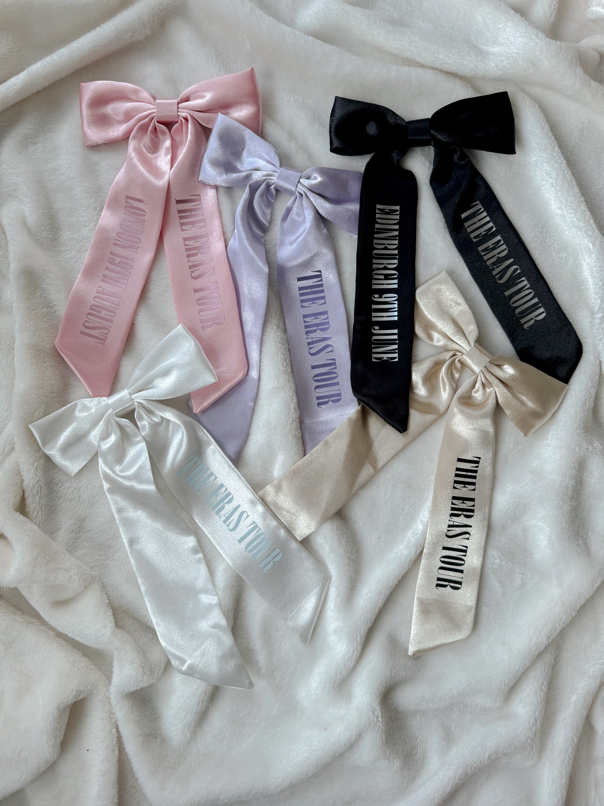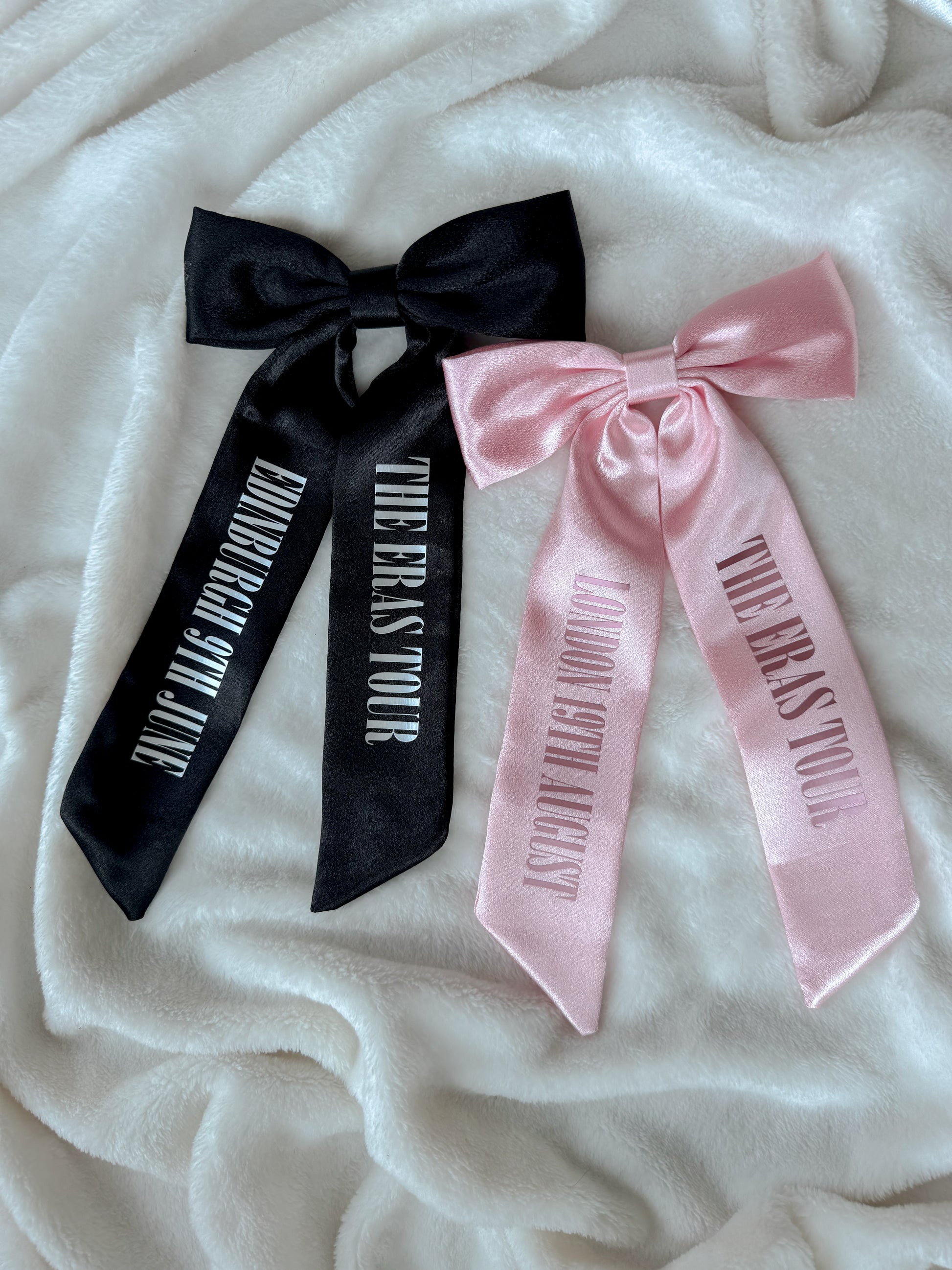 Perfect for anyone attending the Eras tour to add some personalisation to your outfit. All bows come with 'The Eras Tour' as standard and you can customise to include your date (please see images for examples of recent customer order) If you want to include your date, please specify this in the personalisation box otherwise it will just be standard text on the bow.