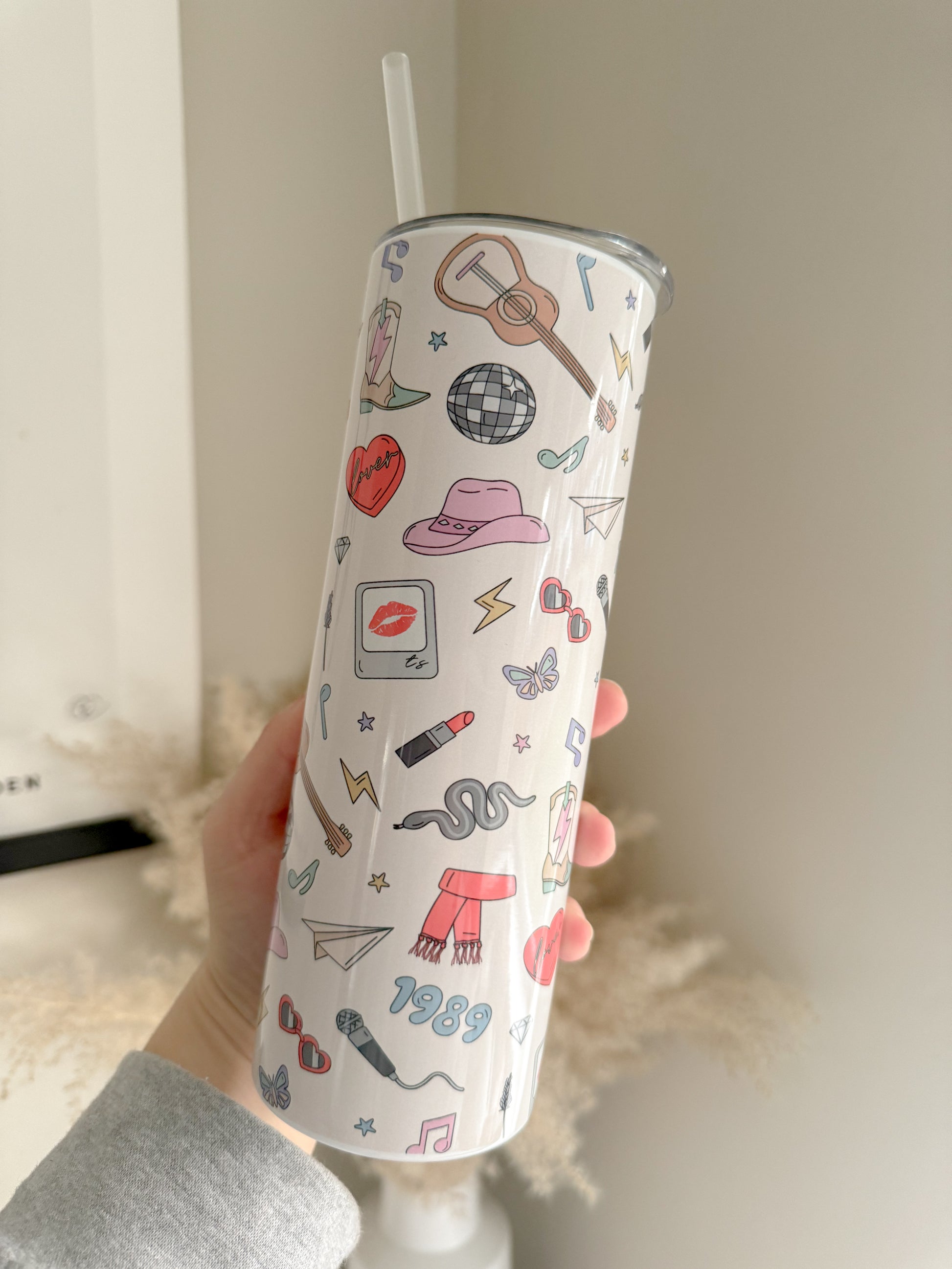 For all the Swifties out there, get your very own Swiftie Eras Inspired 20ozm Stainless Steel tumbler. Featuring a range of references from some of the most iconic Swiftie songs!